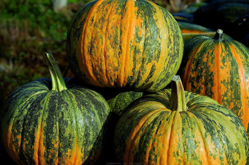 Magnifique citrouille verte avec stries orange, la citrouille Styrian produit une abondance de graines comestibles sans écales. Bonne taille.