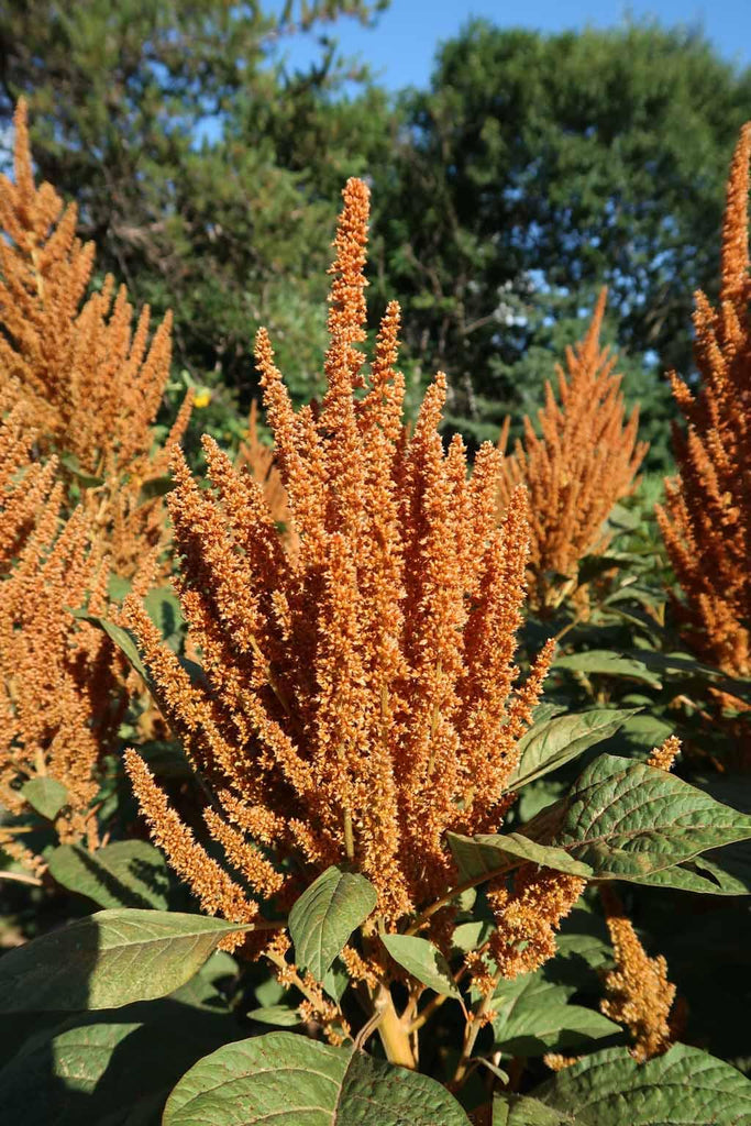 L'amarante Hot Biscuits produit de superbes panicules dorées dressées. Effet contrastant et saisissant en massif. Hauteur du plant : 1,5 m.