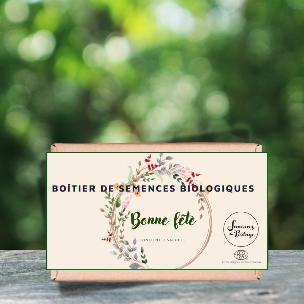 Notre mélange BONNE FÊTE est un assortiment de 7 sachets de plantes légumières, aromatiques, médicinales et ornementales.