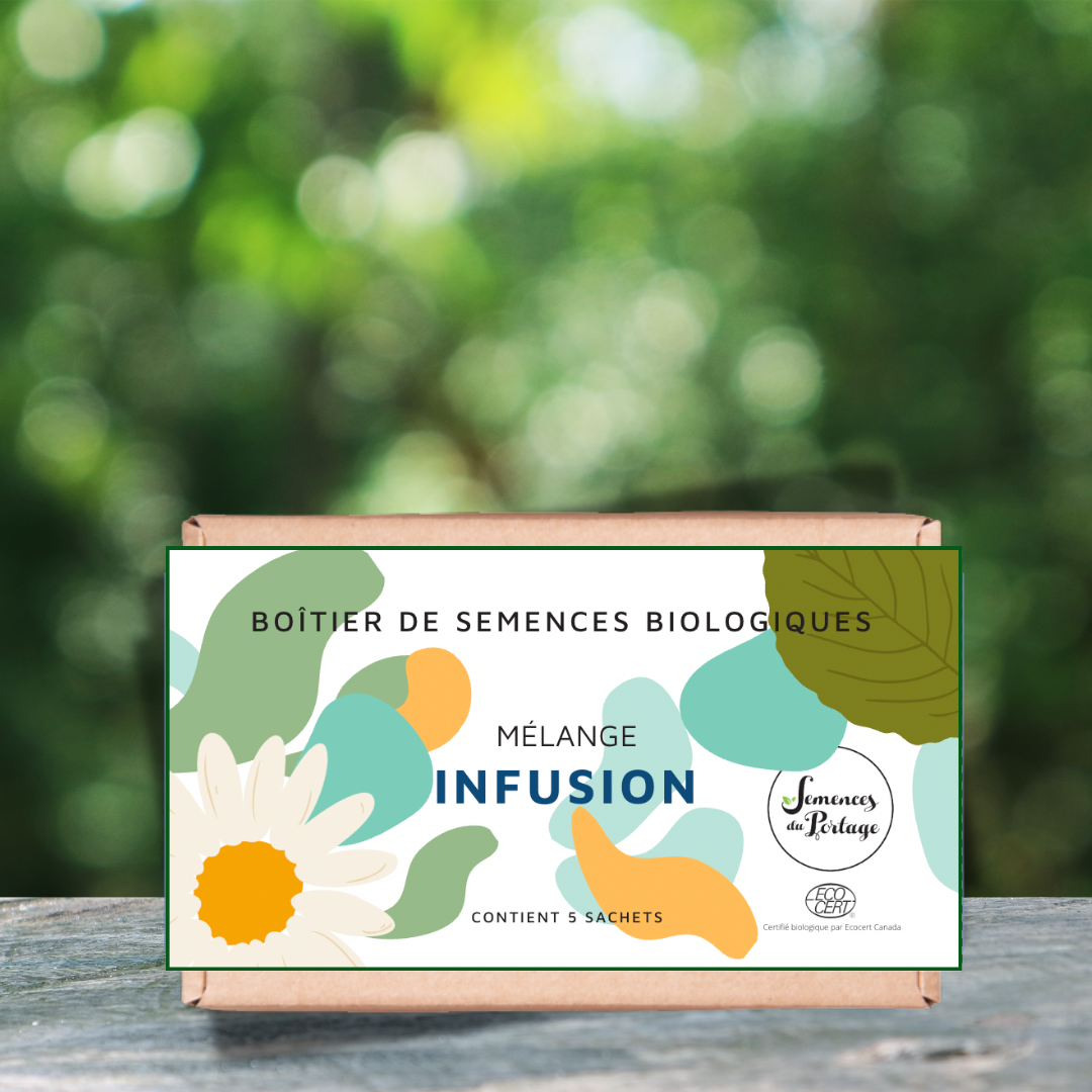 Le nouveau boitier de semences biologiques MÉLANGE INFUSION comprend :