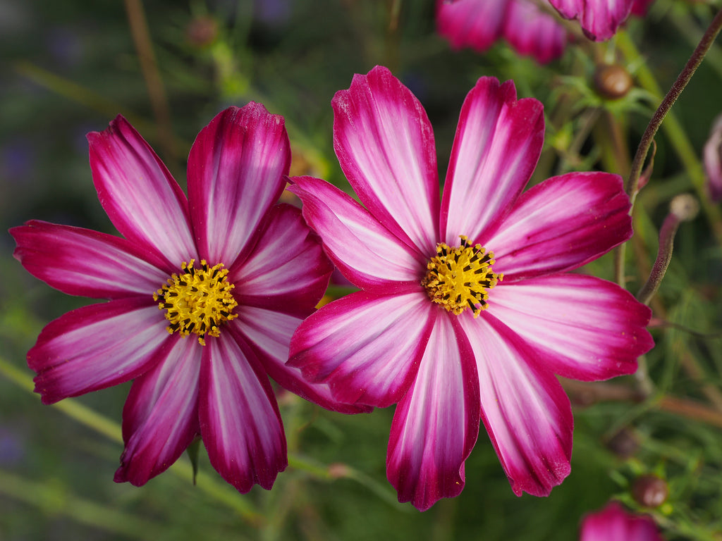 Magnifique cultivar aux fleurs doubles, rose pâle ourlé de rose vif. H : 90 à 120 cm.
