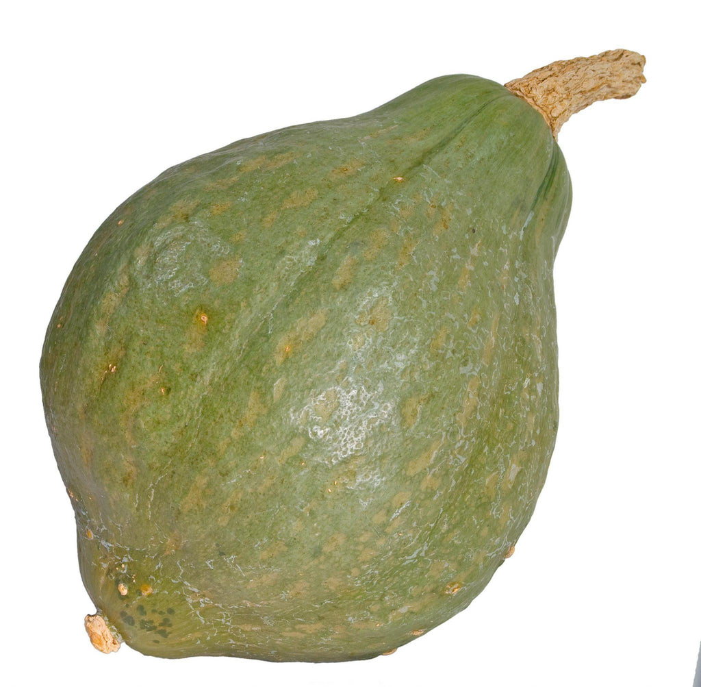 « Souvent volumineuse, cette courge en forme de poire est de couleur vert foncé à gris ou orange. Savoureuse,