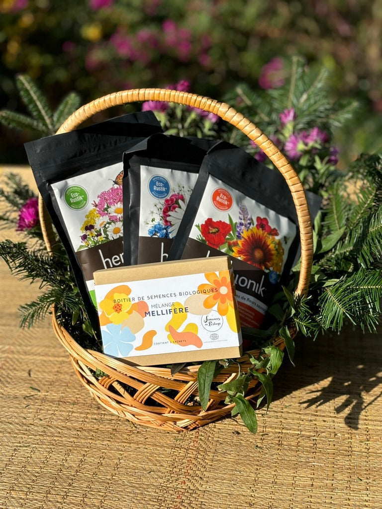 Ensemble cadeau : Boîtier des semences mellifères et trio de mélanges de fleurs Herbionik 🌼 🐝 🦋