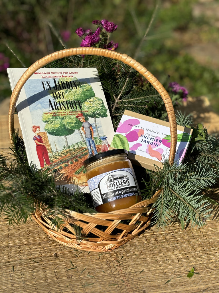 Ensemble cadeau ENFANT : Livre de jardinage, miel de bleuet et boîtier premier jardin 🍉