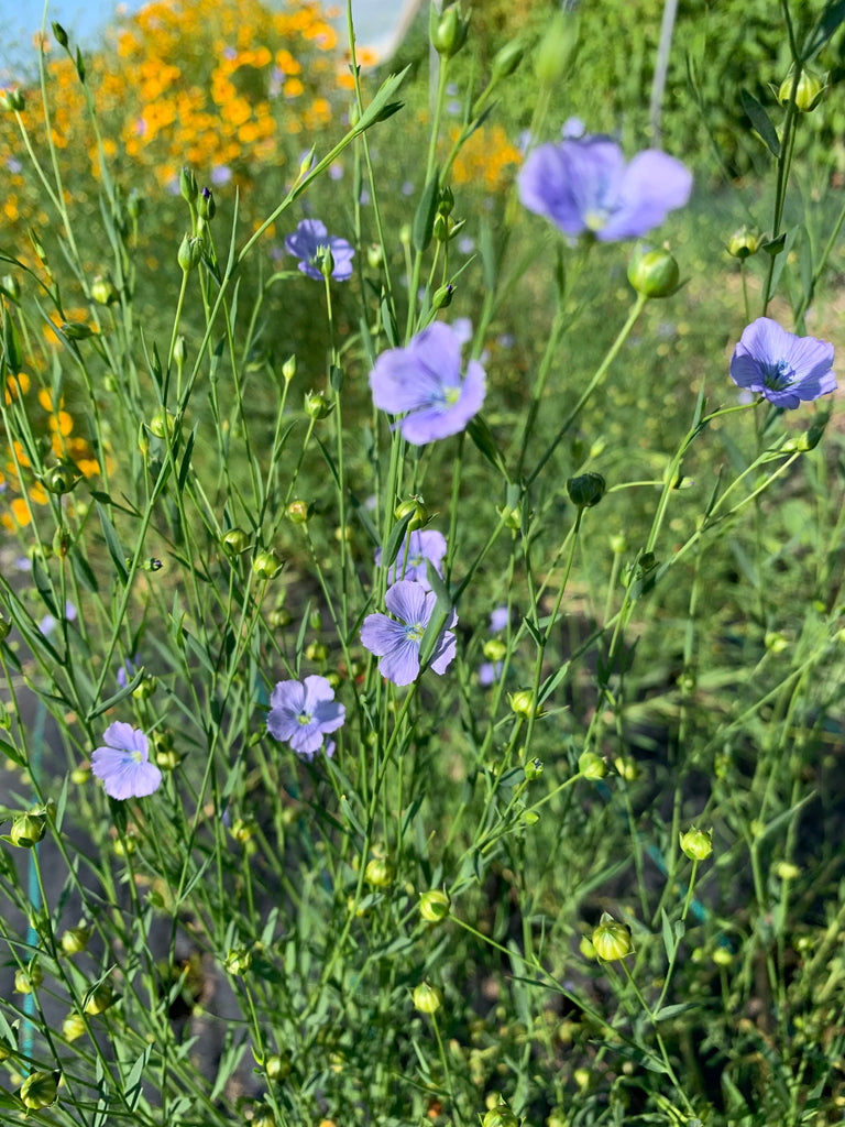Plants frêles de 70 cm de hauteur déployant une multitude de petites fleurs bleues qui, une fois fécondées, donne des graines riches en Oméga 3 pour la consommation. Jolies fleurs coupées.